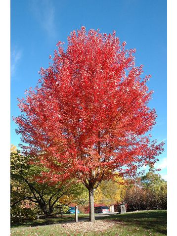 Саженцы Каштана конского голого Отумн Блейз (Autumn Blaze) дерево среднего размера, высотой, не превышающей 15 метров. Крона раскидистая, но достаточно плотная с невероятной багрово-алой листвой, как у осеннего дерева. Зацветает весной, в мае красными цветами. Каштан конского голый Отумн Блейз предпочитает достаточно освещенные места и суглинистые почвы, с присутствием известняка, что свидетельствует о его требовательности. При этом, он устойчив к морозам, а также к болезнетворным вредителям.