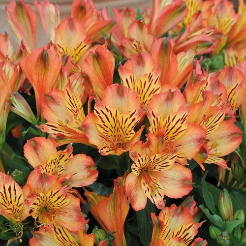 Саженцы альстромерии обыкновенной Интиканча Брисе (Inticancha Brice) ценятся за очень красивые цветы, которые украсят сад и послужат материалом для нежных мини-букетов. Высота взрослого растения не превышает 40 сантиметров, что позволяет выращивать их в контейнерах и цветочных горшках. Для этого сорта характерна необычная окраска цветов – лепестки окрашены разными тонами оранжевого, а на поверхности имеются темные штрихи. При благоприятных условиях растение цветет дважды за сезон. Этот сорт не прихотлив, но нуждается в защите от гусениц и паутинных клещей.