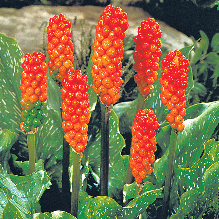 Рассада Аронника итальянского Arum Іtalicum (Арум Италикум) хорошо растет в солнечном и тенистом месте. Из семян весной появляются листья, а затем соцветия. В августе растение дозревает. Ягоды Аронника итальянского ядовиты.