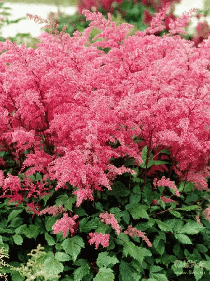 Рассада Астильба простая Афродита (Aphrodite) относится к невысоким растениям высотой до 50 сантиметров. Из купленных в нашем магазине семян вырастет воздушный куст с соцветиями имеющими ромбическую форму малинового цвета. Лепестки у взрослого растения имеют фиолетовый оттенок. Пик цветения приходится на середину июля и продолжается в общей сложности до 20 дней. Растение довольно не неприхотливое, самое главное следить за поливом, так как астильбе важна влажность почвы. К характерным особенностям Астильбы простой Афродиты можно отнести:
