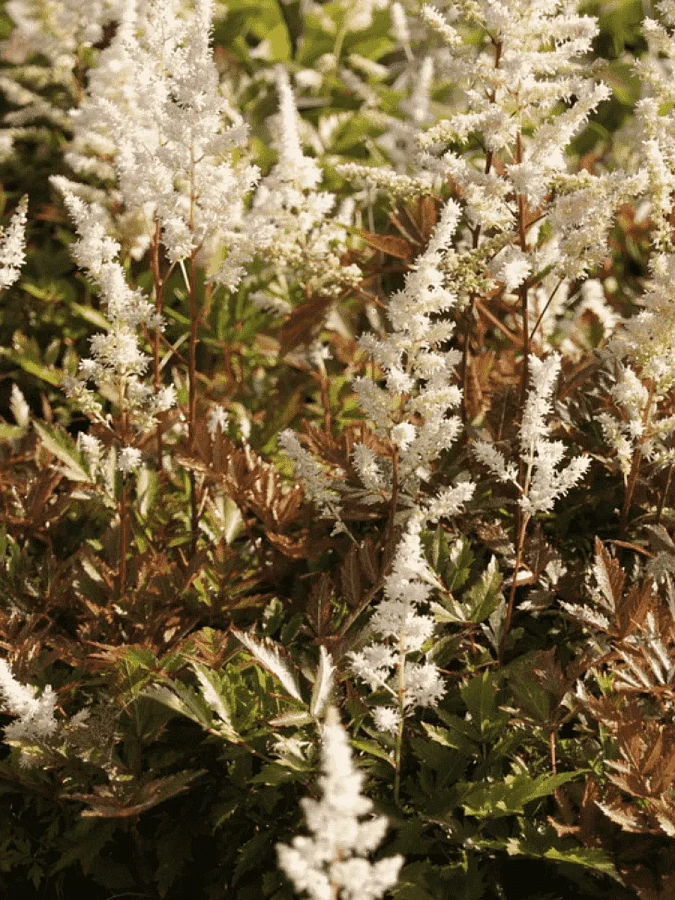 Рассада астильбы японской Бронзлауб (Bronzelaub) поразит вас необычным бронзовым окрасом весенних листьев. В июле появятся лёгкие ажурные кремово-белые цветы, собранные в роскошные ромбические соцветия. Семена и рассаду надо оберегать от засухи и ярких солнечных лучей, высаживать на хорошо увлажнённую питательную почву на полузатемнённые участки. Bronzelaub относится к многолетним растениям, но каждые 4-5 лет надо делить куст. Растение компактное, в высоту достигает всего 40-50 см. Листья тёмно-зелёные, но весной приобретают бронзово-коричневый цвет.