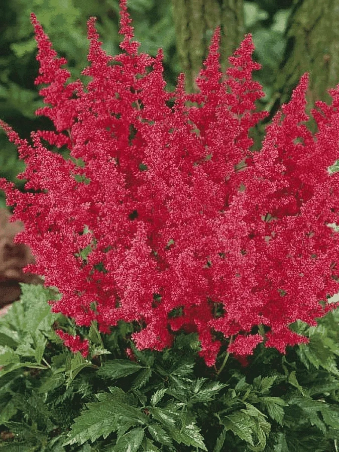 Рассада астильбы японской Монтгомери (Montgomery) украсит ваш цветник ярко-красными пышными соцветиями с мелкими ажурными цветами, которые просто не могут остаться незамеченными. Цветы появятся во второй половине июля, но благодаря резной форме листьев и насыщенному цвету астильба Монтгомери будет украшать участок и после цветения, и до появления бутонов. Весной у листьев появляется красновато-бурый оттенок. Семена хорошо приживаются на влажных удобрённых почвах, высевают их весной, предварительно проведя стратификацию. Растение не переносит засуху и требует обильного полива в жаркие дни. В высоту может достигать 70 см, при этом высота соцветия может быть 17-20 см.