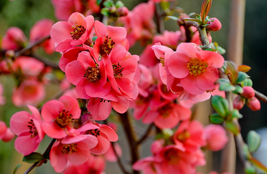 Крупномеры растут на любых плодородных почвах с хорошим дренажем. Еще до полного распускания листьев появляются нежные розово-алые цветочки с желтенькими тычинками. В начале осени кустарник украшают золотисто-желтые миниатюрные плоды. Айва превосходная Пинк Леди неплохо растет в городских условиях.