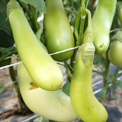 Семена баклажанов "Зелененький F1" прорастают через 10-15 дней. Рассада достигает нужного размера за 40-45 дней. Взрослый куст вырастает мощным, поднимаясь на высоту до 80 см. Плоды цилиндрической формы достигают 23 см в длину. Средний вес составляет до 170 граммов. В технической спелости плоды светло-зеленого цвета. Мякоть очень вкусная, нежная, не имеет горечи. В разрезе она белоснежная, не темнеет. Плоды сорта семян баклажанов "Зелененький F1" обладают высокими вкусовыми качествами при любом виде кулинарной обработки.