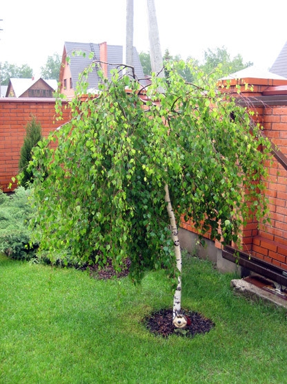 Саженцы Берёзы повислой Янги на штамбе (Betula pendula) – лиственное дерево. Его высота зависит от высоты штамба. В среднем – 250 сантиметров. Крона зонтикообразная, сформирована из тонких ветвей плакучей формы, диаметром около 150 сантиметров. Ежегодный прирост не более 8 сантиметров. Сорт Янги на штамбе популярен у садоводов благодаря своим плакучим веткам, спускающимся до земли. Листья его остро-яйцевидной формы зеленого окраса. Цветет в мае цветками светло-зеленого тона в виде сережек длиной до 7 сантиметров. Кора белая. Дерево неприхотливо. Может произрастать в контейнерах. Без труда переносит даже длительно увлажненную почву. Хорошо себя чувствует на открытой местности и в полутени. Не боится морозов.