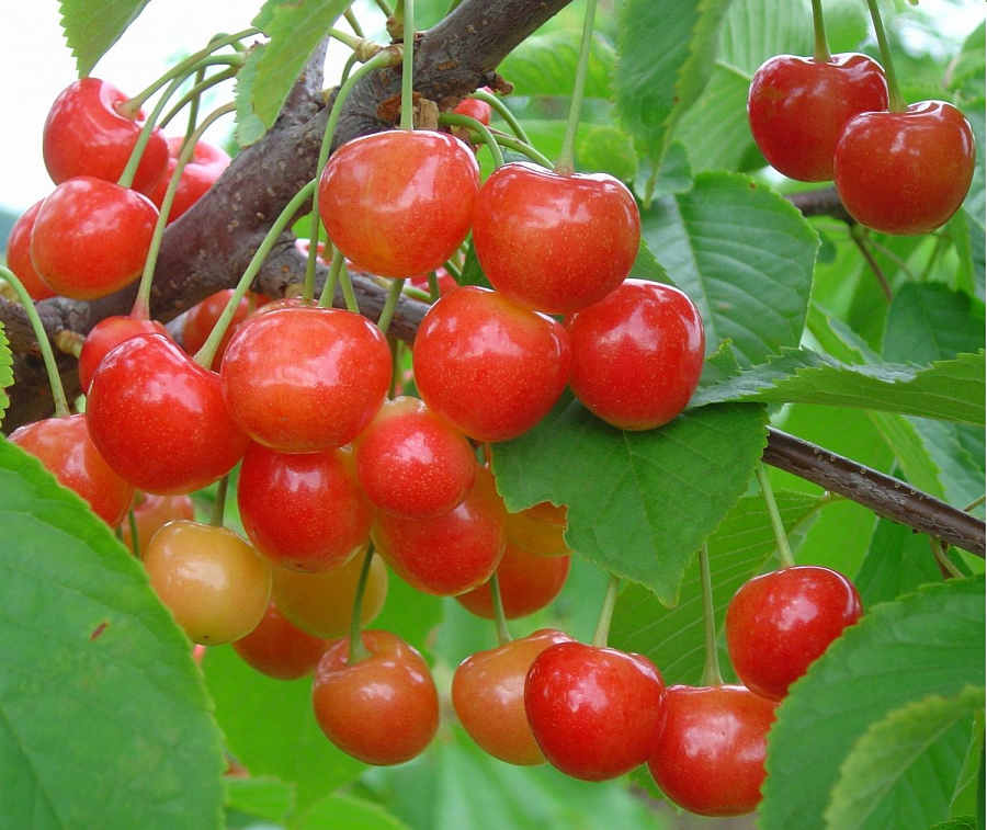 Саженцы черешни Соперница позволят ежегодно собирать обильный урожай вкусных ягод крупного размера. Сорт не является самоплодным, потому ему требуются дополнительные опылители.Лучшие опылители - Ипуть, Гастинец, Гронкавая, Сюбаровская, Янтарная. Первый урожай появляется на 4 год посадки.