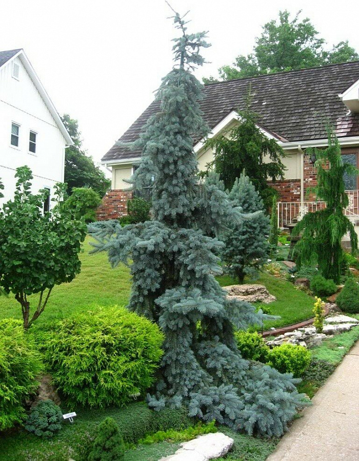Саженцы Ели Голубой Пендула (Pendula Picea pungens) – оригинальное и необычное оформление для сада, парка, аллеи. Эти хвойные относятся к плакучей форме, в некоторых случаях их выращивают как стелящееся растение. Ветки пушистые, мощные, могут расти как вертикально, так и вверх, формируя дугу. Высота растения может достигать 2 метров. Pendula Picea требует достаточно много места, плохо переносит густые посадки, нуждается в хорошем освещении. В то же время хорошо переносит засуху и сильное снижение температуры, не требовательно к почве и не нуждается в подкормке.