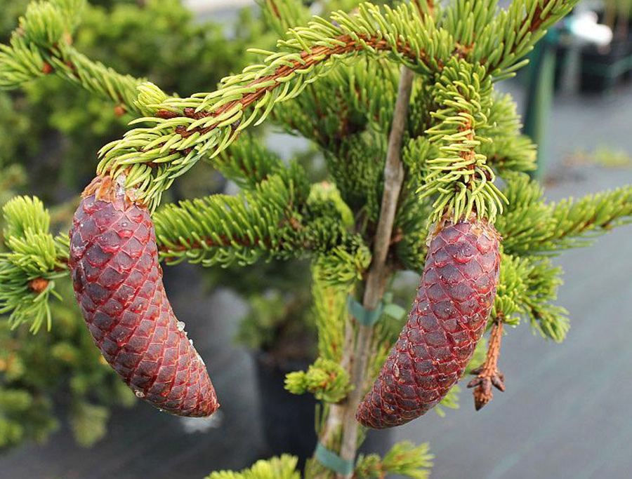 Саженцы Ели колючей Лаки Страйк (Lucky Strike) – маленькое медленнорастущее дерево, у которого крона неправильной формы конуса. Длина около 2х метров. Ель имеет щетинистую, глянцевую, хвою темно-зеленого окраса, длина которой 2-3- сантиметра. У растения изогнутые ветви и большие лилово-красные шишки, которые позже становятся коричневыми. Ель колючей Лаки Страйк любит свет, дренированный грунт, песчаные, супесчаные, плодородные, слабокислые почвы. Дерево устойчиво к морозам, дыму и ветрам. Переносит обрезку. Не переносит переувлажнения и уплотнения почвы. Подходит для аллей, каменистых садов, создания сезонных композиций и одиночной посадки.