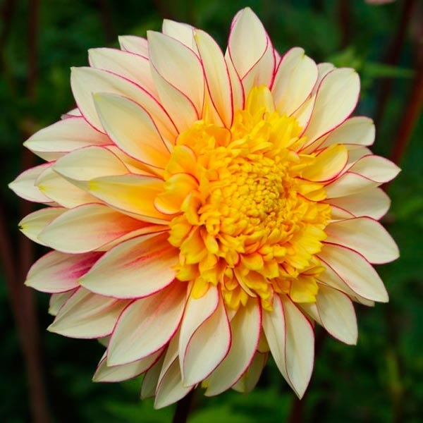 Георгина анемоновидная Полька - это великолепное растение, которое поразит вас своей изысканной красотой. Ее кремово-желтые цветы с тонкой малиновой каймой и штрихом создадут неповторимый акцент в вашем саду. Высота растения может достигать до 110 см, что делает его идеальным выбором для создания живописных цветочных композиций. Листья георгины анемоновидной Полька имеют элегантную форму и придают растению особый шарм.