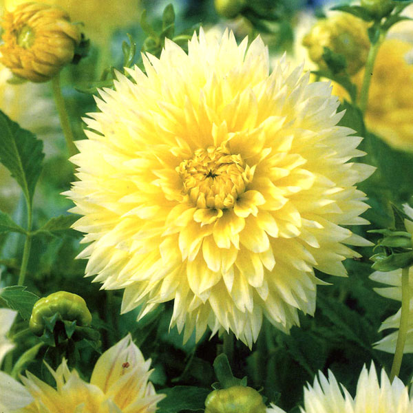 Георгина декоративная канари фубуки - это настоящее воплощение летнего солнца в вашем саду! Это растение поразит вас своей нежно-желтой окраской цветков, диаметр которых достигает 11 см. Высота георгины может достигать до 100 см, что делает ее идеальным выбором для создания ярких цветочных композиций. Листья георгины имеют форму сердца и создают уютный зеленый фон для ярких цветков.