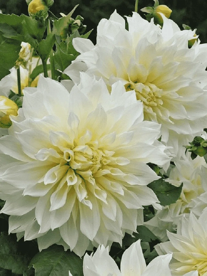 Луковицы георгины махровой Флер (Dáhlia variabilis Fleurel) летом подарят хозяевам приусадебного участка большие белоснежные цветы, по форме напоминающие лотосы. Диаметр соцветия из многочисленных заостренных лепестков достигает 20-25 сантиметров. Цветение обильное, до поздней осени. Высота куста — до 120 сантиметров. Стеблям тяжело держать огромные цветочные шапки, поэтому потребуется подвязка их к дополнительной опоре. Георгины Fleurel хороши и для украшения сада, и для срезки. Букет из них долго сохраняет свежесть. Этот сорт нетребователен к уходу, переносит полутень, регулярный полив необходим в засушливое время и в период бутонообразования.