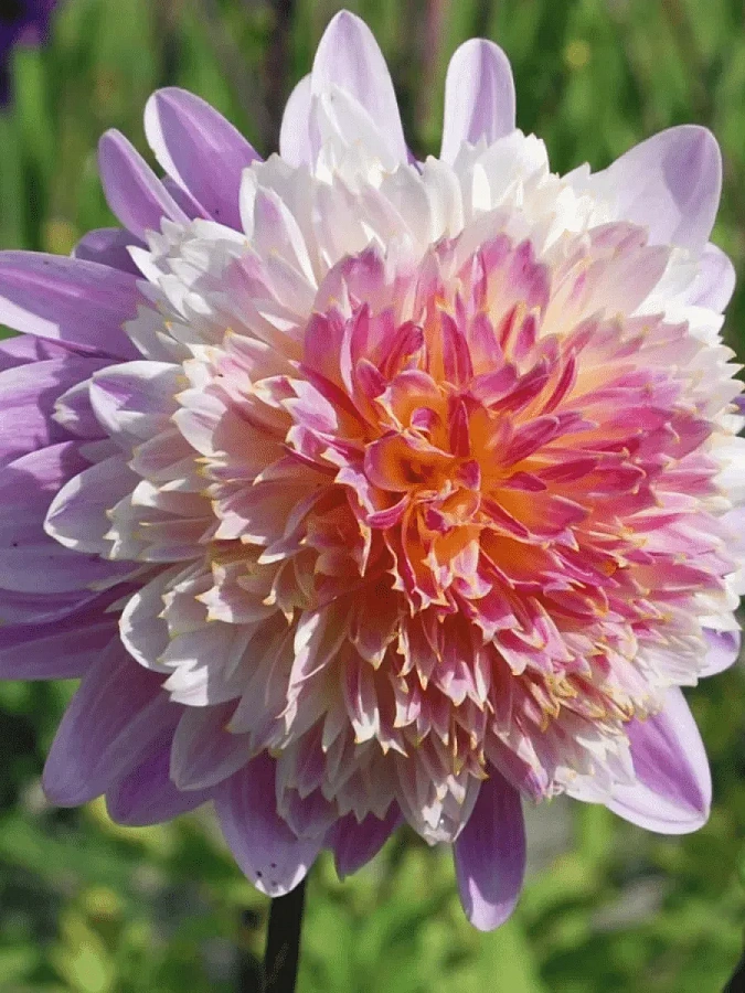 Клубни георгины Ламбада (Dáhlia variabilis, Lambada) – гарантия получения цветов с высокими декоративными свойствами. Посадив их в грунт с наступлением устойчивого тепла, уже в начале лета получите первые махровые двуцветные бутоны анемоновидной формы. Лепестки в центре образуют плотно набитую шаровидную сердцевину пурпурно-белого цвета. Нижний ряд, удлиненные округлые язычки, создает идеальное обрамление. При благоприятных условиях агротехники, бутоны достигают в диаметре 15 сантиметров. Кусты средней высоты, от 60 до 100 сантиметров. Побеги крепкие, не полегают, в опоре не нуждается. Цветение волнами, до конца сентября.