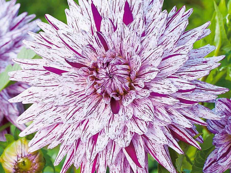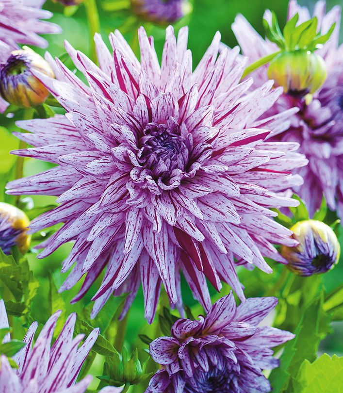 Георгина полукактусовая хай трио - это великолепное растение с уникальным сочетанием светло-фиолетовых цветков, украшенных бордовыми точками и штрихами. Ее высота достигает до 100 см, а размер цветка равен 15 см. Это растение отличается не только красотой, но и морозостойкостью, что делает его идеальным выбором для садов в Московской области и большей части России.