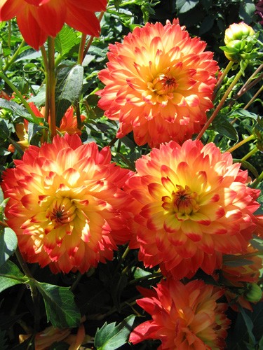 Крупномеры георгины махровой Процион (Dahlia variabilis Procyon) ― невероятно красивые и декоративные растения. Их отличают очень яркие и пышные соцветия. Собранные густо в шар лепестки с рассеченными кончиками оранжево-желтого цвета, украшают красные пятнышки по краям. Георгина отличается от аналогичных обильным и продолжительным цветением с начала лета до самого октября. Диаметр одного цветка в максимально распущенном состоянии достигает 15 сантиметров. А сам куст может превысить один метр в высоту, что стоит учитывать при выборе места для его посадки. Подходит как для одиночной посадки, так и для использования в группах.