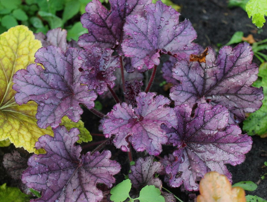Рассада гейхеры Фростед Вайолет (Frosted Fiolet) внесет разнообразие в смешанные посадки. Многолетник с крупной насыщенно-фиолетовой листвой станет ярким акцентом на фоне зелени других растений. Особенно эффектно этот сорт смотрится в начале лета, когда из розетки появляются цветоносы с нежными кремовыми соцветиями.