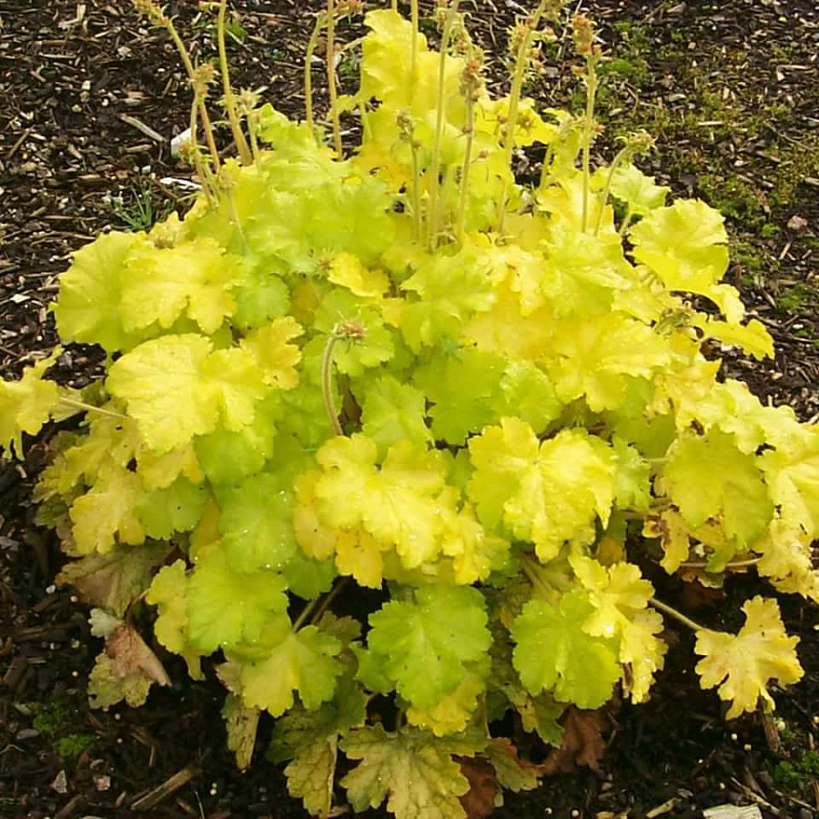 Рассада гейхеры Лайм Шифон (Lime chiffon) отличается высокими декоративными качествами и неприхотливостью. Особенно эффектно многолетник выглядит во второй половине лета, когда среди салатовых листов распускаются кремово-розовые цветочки. Этот сорт применяется при создании смешанных клумб и миксбордеров.