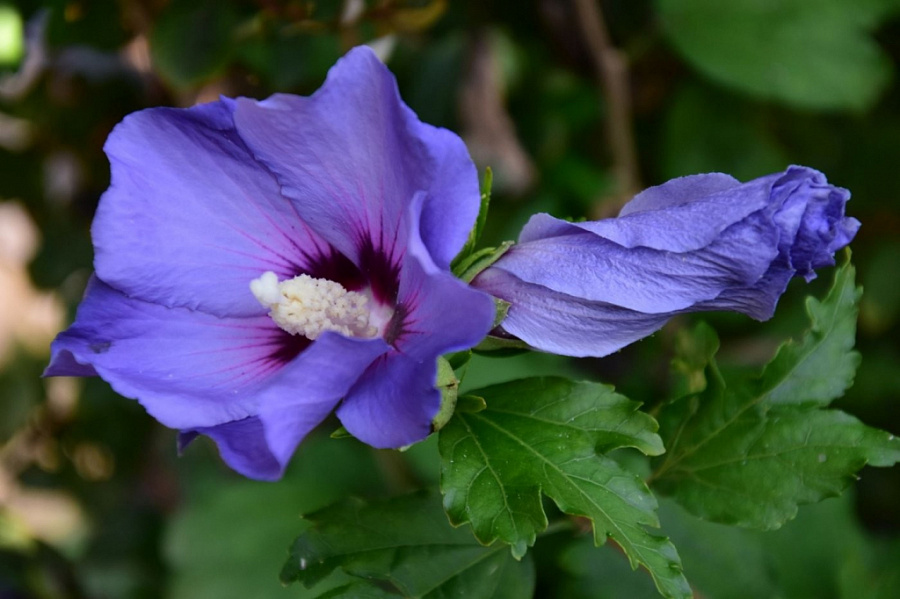 Гибискус сирийский oziau blu - это великолепное растение, которое поразит вас своей красотой и изяществом. Его ствол прочный и устойчивый, а размеры достигают высоты до 200-300 см, что делает его заметным акцентом в вашем саду. Листья гибискуса имеют темно-зеленую окраску и необычную форму, что придает растению особый шарм.