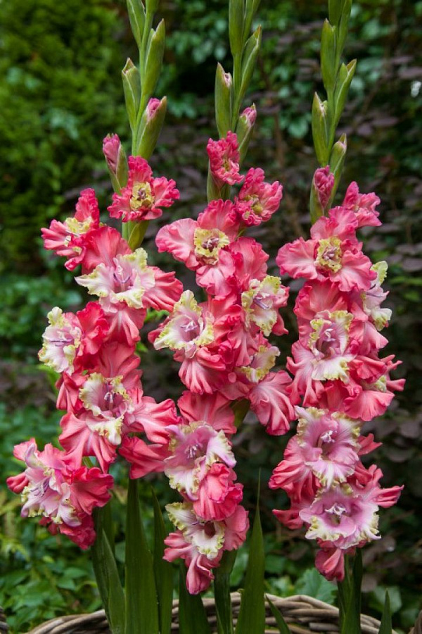Луковицы гладиолуса гибридного Broken Heart Frizzle высаживают в апреле – мае, когда почва прогреется минимум до +5 градусов. Место для растений выбирают солнечное либо частично притененное. Почва для сорта подходит практически любая. Высота растения варьируется от 50 до 150 см. Его окутывают мечевидные листья насыщенно-зеленого оттенка. Декоративный вид культура приобретает во время цветения. Бутон будто состоит из двух разнообразных цветков: внутренний — нежно-сиреневый с каймой по краю лепестка сложного желто-салатового цвета, внешний — розового цвета. Цветет гладиолус гибридный Broken Heart Frizzle с июня до начала сентября.