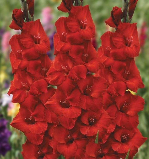 Гладиолус крупноцветковый "Рома" - это великолепное растение, которое поразит вас своей красотой и изяществом. Его стебель прочный и прямой, достигает внушительной высоты, а крупные цветки с красным оттенком и белым штрихом привлекут восхищенные взгляды окружающих. Листья гладиолуса имеют интересную форму, что делает его еще более привлекательным.