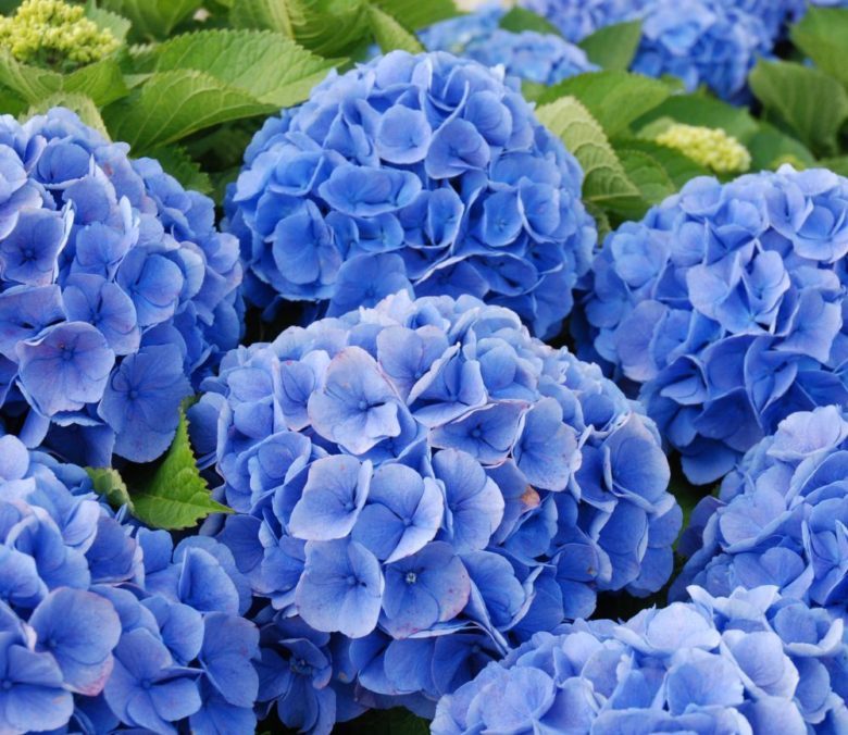 - оттенок цветов зависит от почвы. На кислой – от светло-голубого до насыщенно-синего, а при нейтральной кислотности цветы приобретают розовые тона;