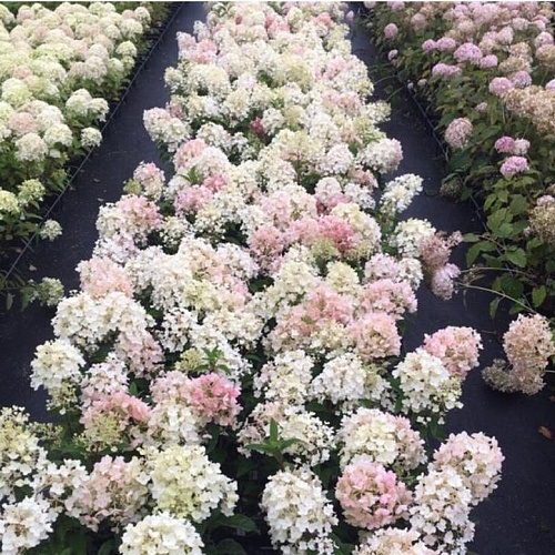 Саженцы Гортензии метельчатой Little Blossom (Hydrangea paniculata) это низкорослое растение, которое вырастает не более чем на один метр в высоту. Имеет крону в виде полусферы. Даже в период сильных ливней сохраняет свою форму и декоративные качества. Литтл Блоссом цветет все лето, радуя глаз сначала белым оттенком бутонов, а к концу цветения розоватым оттенком. Для этого сорта характерен яркий аромат. Широко применяется в оформлении букетов, можно выращивать на терассе или балконе. Куст устойчив к насекомым и болезням.