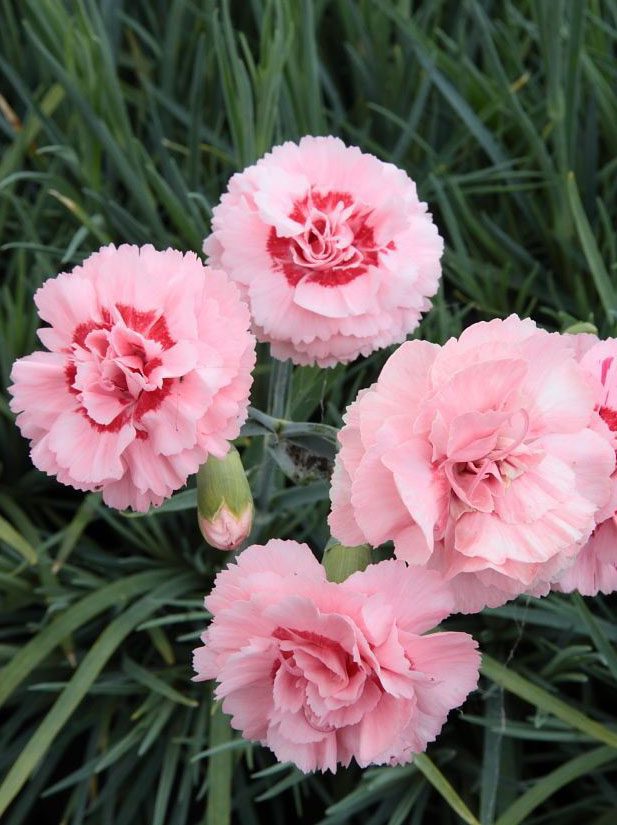 Саженцы гвоздики перистой Дорис (Doris) ценятся за великолепный внешний вид – во время цветения на невысоких кустах распускаются розовые цветы, каждый лепесток которых украшен ярким красным пятном. Растение используют для оформления садового ландшафта и создания групповых посадок. Первую половину лета ваш сад будет наполнен нежным цветочным ароматом. Для посадки рекомендовано выбирать хорошо освещенные участки. Чтобы избежать скопления влаги, почву предварительно дренируют. Перистая гвоздика Дорис обладает устойчивостью к холоду, поэтому не нуждается в зимнем укрытии.