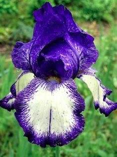 Плотный крепкий цветонос достигает в высоту 95-100 сантиметров. На нем образуется от 1 до 7 бутонов. Форма цветка очень красивая – три верхних внутренних лепестка образуют купол, а три наружных – юбочку. Окрас неоднородный – верхние лепестки фиолетовые с белым мазком по центру, нижние – белые с темно-фиолетовой каймой. Бородка – сиреневая. Размер цветка – 10-15 сантиметров в диаметре.