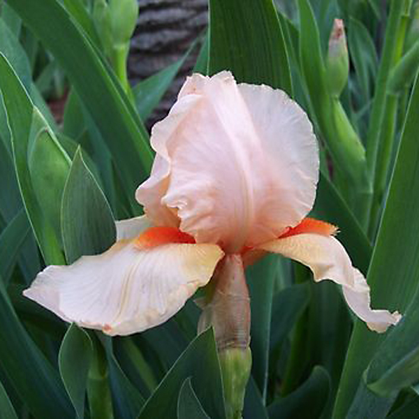 • листва сохраняет свой сочный цвет на протяжении всего лета. Семена этого сорта тяжело прорастают, поэтому растение рекомендуется размножать вегетативно. Бутоны имеют персиково-розовый оттенок с мандариновой бородкой. Лепестки немного волнистые, придают цветку особое изящество. Прекрасно смотрится в сочетании с боле темными оттенками цветков на групповых клумбах и в подарочных букетах.