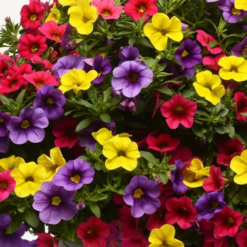 Калибрахоа смесь Фьюзеблс Парадайз Айланд - это настоящий райский остров в вашем саду! Это растение поразит вас своими яркими миксовыми цветками, размер которых достигает 2.5-3 см. Высота куста составляет 20-30 см, что делает его идеальным для украшения горшков и клумб. Листья калибрахоа имеют форму, напоминающую звезду, что добавляет растению особого шарма.