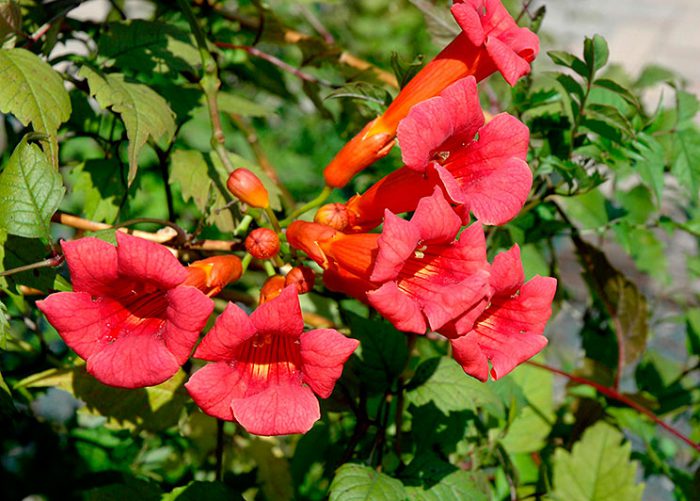 Кампсис укореняющийся урсинов - это великолепное растение с оранжевыми цветками, которое поразит вас своей красотой и изяществом. Его ствол прочный и устойчивый, а размеры растения позволяют ему стать настоящим украшением вашего сада или огорода. Листья кампсиса имеют необычную форму, что делает его еще более привлекательным.