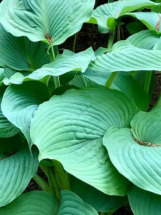 Хоста гибридная Блу Амбреллаз относятся к очень крупным сортам. Гигантские куртины состоят из плотных сине-зеленых листьев, достигающих в длину 40 см. В июле появляются длинные цветоносы с нежными светло-сиреневыми колокольчиками. Цветение продолжается до конца лета. Этот сорт подходит для оформления водоемов, создания смешанных посадок и заполнения пустых массивов.