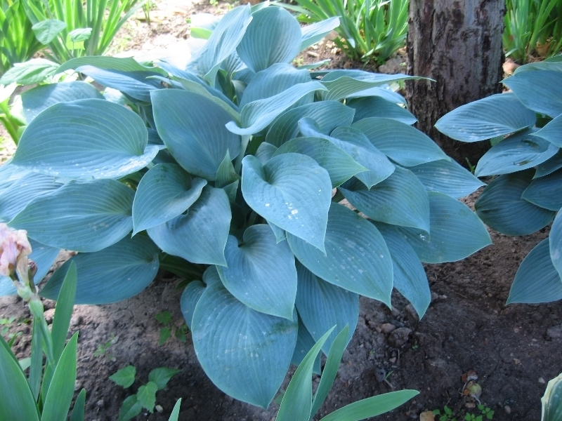 Рассада хосты тардиана Халцион (Halcyon), которая выделяется сочными сине-зелеными крупными листьями сердцевидной формы, хорошо приживается. Куртина формируется очень аккуратная, листочки как будто кто-то специально уложил по кругу. Растение может расти на солнечных местах, но необычный оттенок листвы лучше всего сохраняется в полутени.