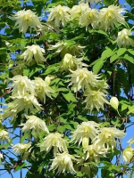 Саженцы Клематиса гибридного Golden Dream (Clematis) лучше всего высаживать на солнечное место с плодородным грунтом. Растение не переносит сильной жары. В высоту достигает 3 метров. Если выращивать вертикально, необходима опора. В ином случае растение будет развиваться как почвопокровное. Сорт Голден Дрим цветет долго, с мая по июнь месяц. В этот период лиана покрывается поникающими махровыми цветками лимонно-желтого цвета. Примечательно, что от цветков исходит приятный грейпфрутовый аромат. Растение широко используется для оформления арок, ограждений, садовых построек. Хорошо смотрится рядом с хвойными и лиственными растениями.