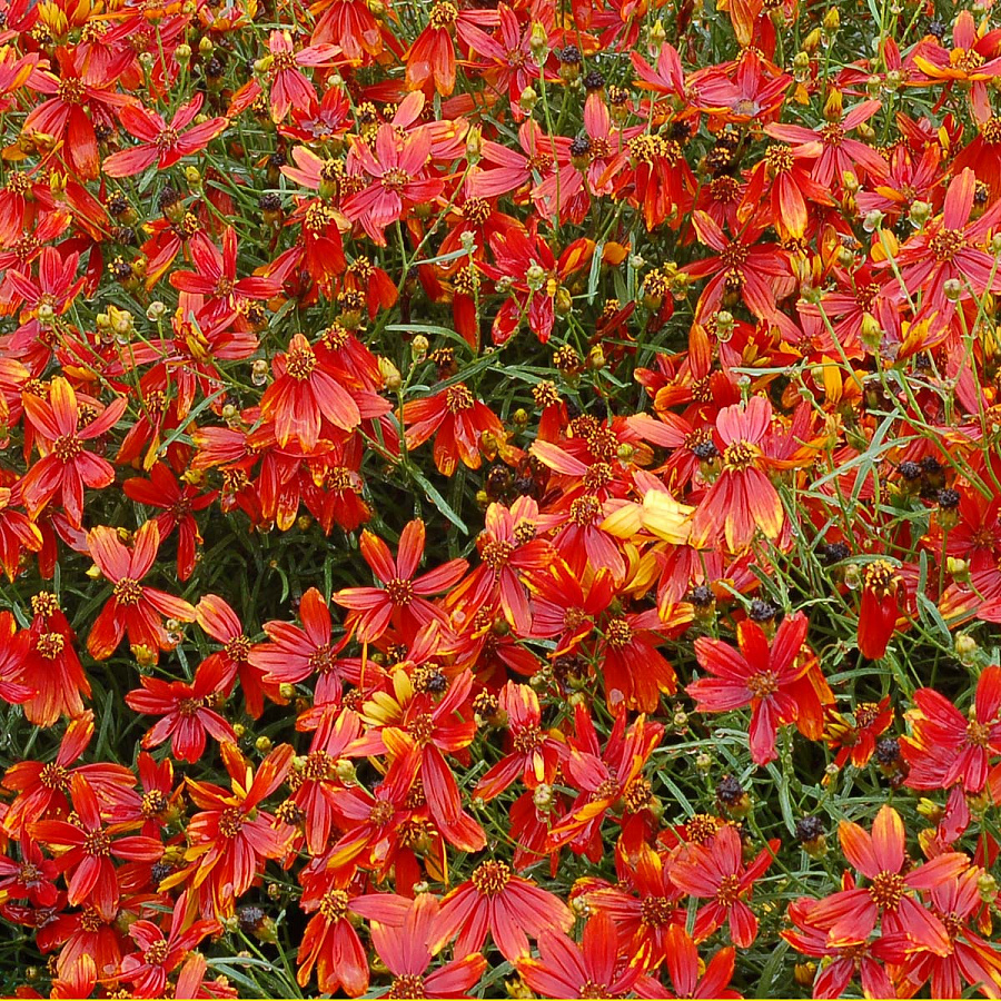 Рассада кореопсиса "Божья Коровка" (Ladybird) - это растение с многократно ветвистыми стеблями до 100 см в длину. В высоту они поднимаются на 30 см. Соцветия — многочисленные, лучистые, звездообразные корзинки до 3 см в диаметре. Цветы окрашены в оранжево-красный цвет. Период цветения - июль, август, сентябрь. Сорт рассады кореопсиса "Божья Коровка" долговечный, без пересадки хорошо цветет до 6 лет. Почва для него подходит плодородная. Участок выбирают хорошо или частично освещенный.