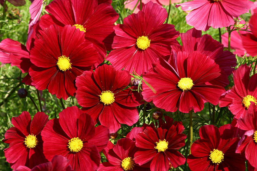 Космея солнечная красная предпочитает солнечные места и плодородные почвы. Рекомендуется высаживать ее группами, чтобы создать потрясающий эффект в вашем саду. Это растение не требует сложного ухода: достаточно регулярного полива и удобрений в период активного роста.