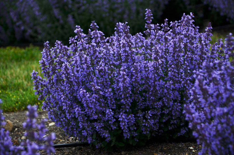 Саженцы Котовника Фассена Kit Cat известен своими высокими декоративными качествами во время цветения. А также, данный сорт способен отпугивать вредителей своим ароматом. Данный сорт отличается своей низкорослостью – всего 35 сантиметров в высоту и 60 сантиметров в диаметре. Не переносит засуху, устойчивость к морозам – средняя. Кит Кэт широко используется в парфюмерии, флористике и медицине. Растение отлично смотрится с пионами, розами, лавандой. В периоды цветения радует взгляд фиолетово-голубыми цветками. Поэтому его часто используют при оформлении альпийских горок, бордюров, рокариев или цветников.