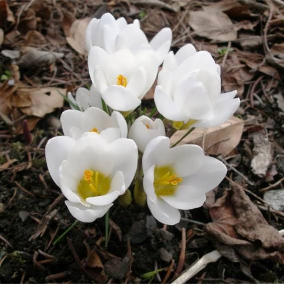 Луковицы крокуса Aubade высаживают с сентября по ноябрь на хорошо освещенные или теневые участки. Это неприхотливые растения, которые хорошо растут в любых почвах. Единственное, не рекомендуется высаживать луковицы крокуса Aubade в места с застоем воды. Высота растения достигает до 10 см. Цветет на протяжении двух-трех недель в марте — апреле. Цветки бокаловидные, снежно-белые с кремово-желтым пятном в основе лепестков. Они обладают очень нежным и приятные ароматом. Для создания интересных декоративных композиций растения высаживают группами до 10 луковиц.