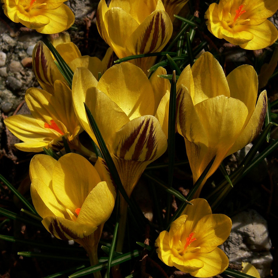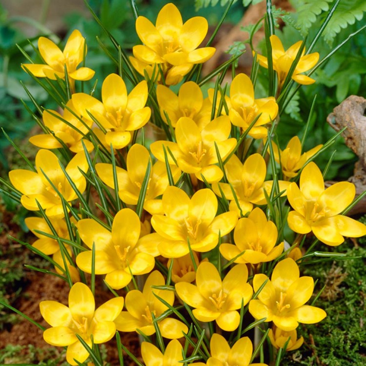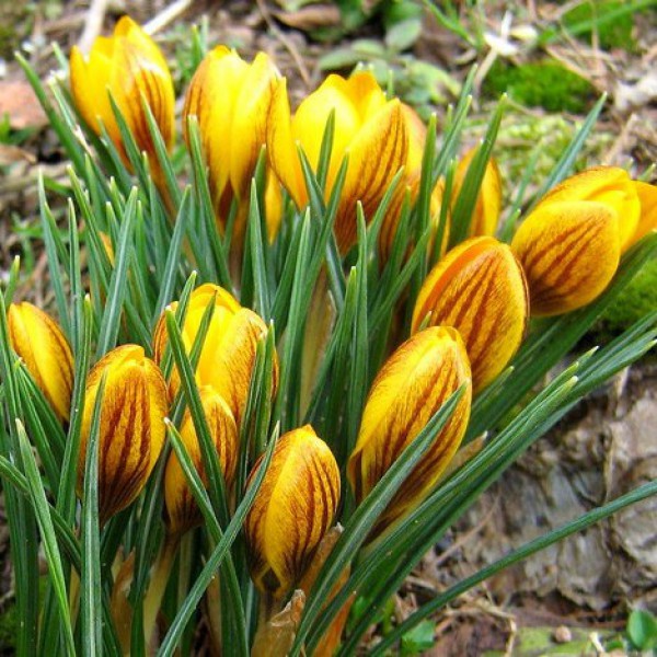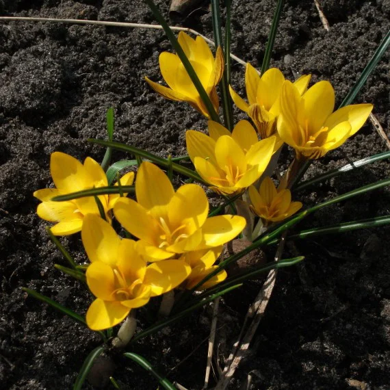 Луковицы крокуса ботанического Дороти (Dorothy) приживаются на светлых участках и вырастают в изящные растения с крупными желтыми цветами. Внешние лепестки бутонов покрыты коричневыми прожилками. Узкие темно-зеленые листья выгодно оттеняют яркие звезды цветов. Луковицы хорошо хранятся в сухих и прохладных помещениях до высадки. Цветение начинается ранней весной и длится до 15 дней.