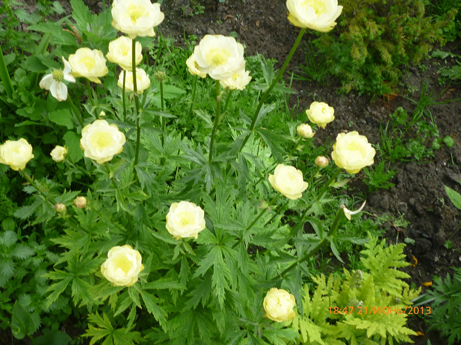 Саженцы купальницы гибридной Чеддар (Trollius hybridus, Cheddar) станут достойным украшением патио и альпинария. Высота взрослого растения не превышает 50 сантиметров. Листва темно-зеленая блестящая, пятиконечная. Куст особенно красив в период цветения. Первые бутоны раскрываются в середине июня. Чашелистики выглядят привлекательно — полумахровые, пастельного кремово-белого оттенка. Многолетник предпочитает освещенные участки, но мирится с полутенью, относится к зимостойким культурам. Для посадки готовят легкие, суглинистые почвы с добавлением гумуса.