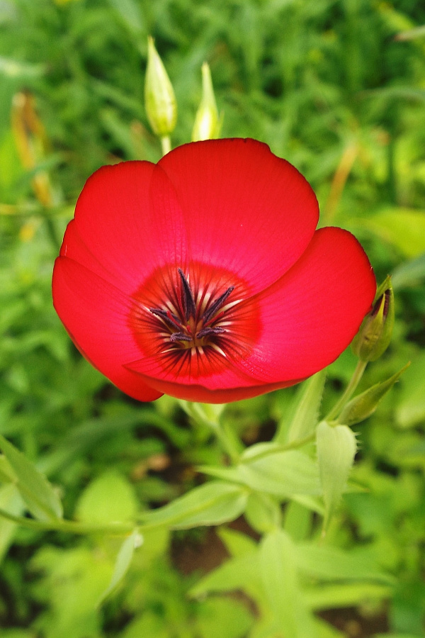 Семена льна «Красный» высевают в открытый грунт в конце мая. В рассадные ящики посева производят в конце марта. Высадка рассады льна «Красный» осуществляется во второй половине апреля. Для однолетника выбирают открытые и солнечные участки сада. Почва нужно плодородная и дренированная. Высота взрослого растения варьируется от 20 до 40 см. Цветение длится все лето и сопровождается большим количеством цветочков красного цвета. Используют сорт семян льна «Красный» для создания низкорослых цветников, рабаток, рокариев и альпинариев. Растение хорошо сочетается со смногими однолетниками и многолетниками.
