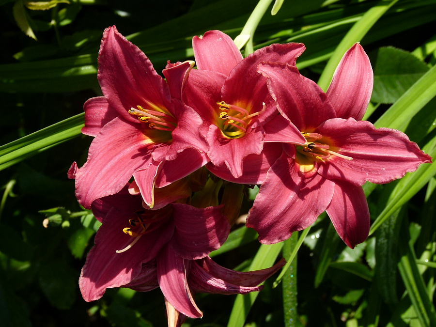 Рассада лилейника «Бурбон Кингс» (Burbon Kings) относится к длительно цветущим растениям. Первые бутоны раскрываются в июне и на протяжении почти двух месяцев куст радует обильным цветением. Цветы достигают до 13 см в диаметре. Цвет лепестков бордово-красный, также на поверхности находятся светлые жилки. Возможно повторное цветение осенью. Семена лилейника «Бурбон Кингс» высевают на солнечные участки. В полутени и при полном затемнении обильного цветения не будет. В уходе рассада лилейника «Бурбон Кингс» неприхотлива. Их можно не пересаживать на новое место в течении десяти лет.