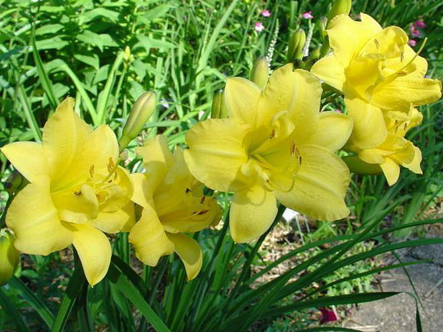 Рассада лилейника Дабл Кьюти (Double Cutie) – это миниатюрное растение с цветами в диаметре до 10 см. Такие цветки источают легкий аромат, выглядят очень привлекательно, имеют желтую окраску с зеленой сердцевиной. Лепестки цветов необычной формы по краям гофрированы, немного загнуты и составляют несколько рядов. На стебле цветоноса нет листьев, поэтому у них формируется густая прикорневая розетка. Именно она добавляет уникальности внешнему виду лилейника. Сроки цветения Дабл Кьюти среднеранние, часто наблюдает повторное цветение. В странах, отличающихся постоянным теплым климатом, цветение не прерывается совсем и затихает всего на пару недель во время замедления активного роста. В климате на территории России растение хорошо смотрится и остается зеленым до самого начала зимы.