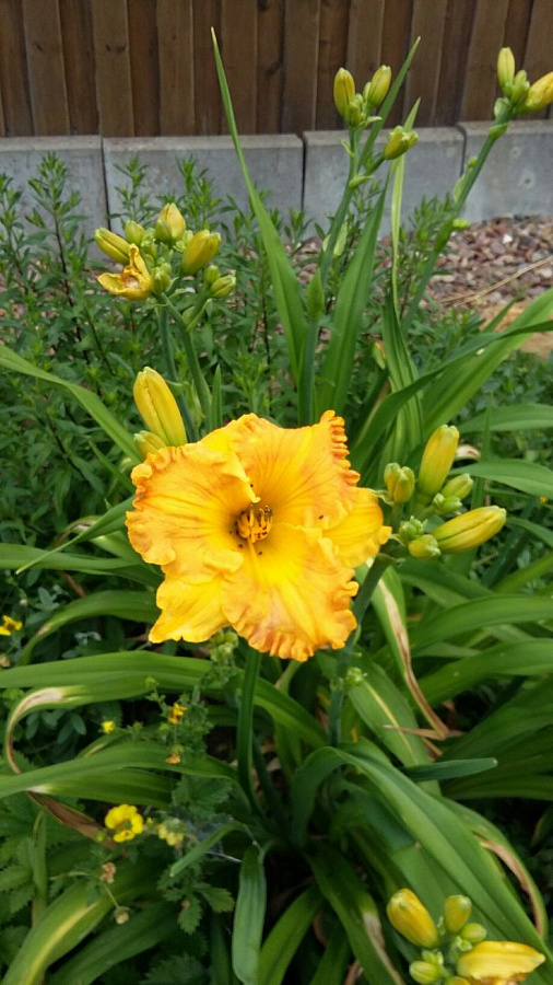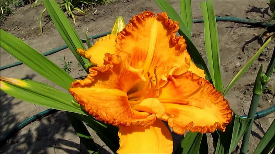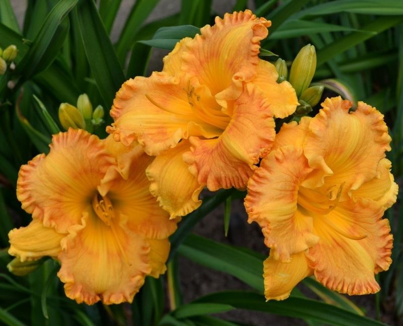 Рассада лилейника Оранж Нассау (Orange Nassau) дает возможность украсить свой палисадник сказочно красивыми цветами насыщенных оттенков. Растение цветет довольно рано, крупными бутонами персико-оранжевого цвета с огромным золотистым глазком и лимонным горлышком. Поверхность лепестков немного смятая, а их края сильно гофрированные.