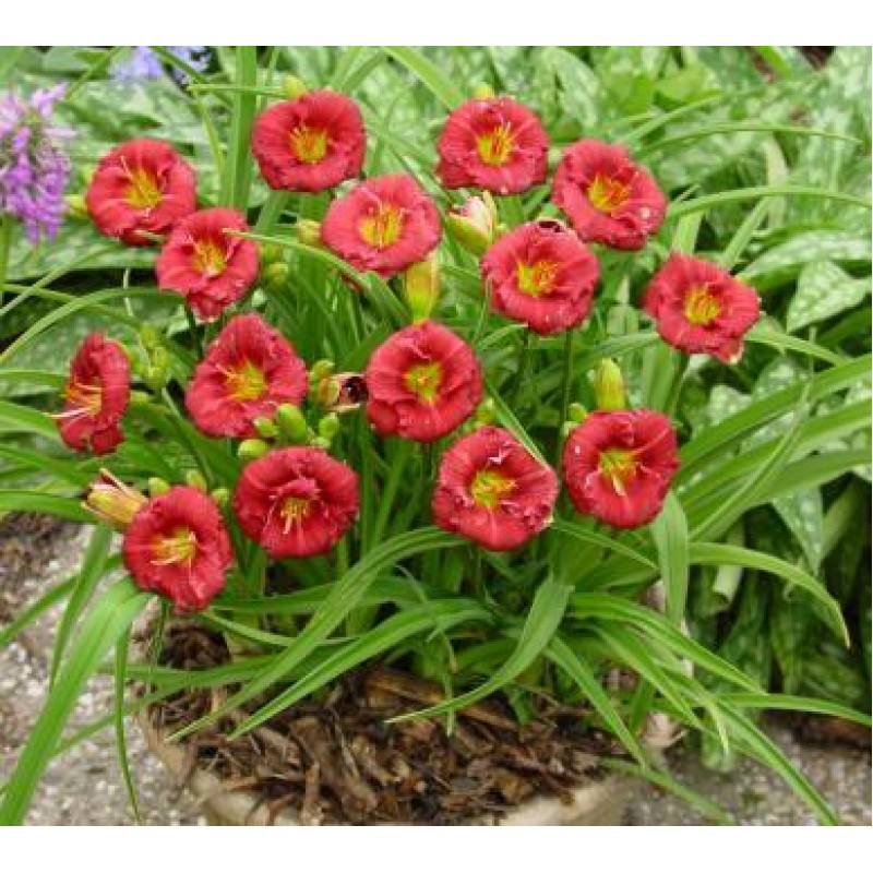 Рассада лилейника "Сайлом Грейс Стэмил" (Siloam Grace Stamile) высаживают на солнечные и полузатененные участки. К составу почвы многолетник неприхотлив. Период цветения - июль, август. Миниатюрные цветочки вишнево-красного насыщенного цвета с еще более темным глазком и зеленым горлышком. Лепестки завернуты наружу, от чего цветочки смотрятся круглыми. В диаметре они достигают 8 см. Сорт рассады лилейника "Сайлом Грейс Стэмил" также отличается невысокими размерами. Высота цветоносов не превышает 40 см.