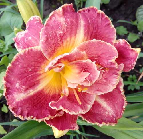Окраска цветка : Розовая с зелёным горлом и жёлтой каймой