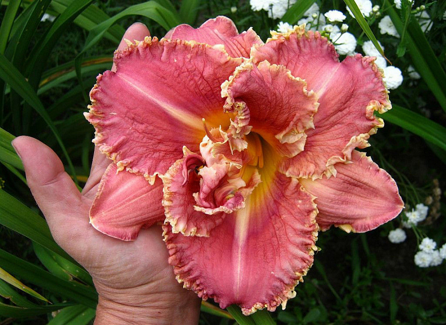 Рассада цветов Сьюзан Причард Петит (Susan Pritchard Petit) – это многолетнее травянистое растение с дуговыми листьями у корней. Цветы вырастают до 15 см в диаметре. Они махровые бордово-розового цвета. Время появления цветов – это конец июля. Лилейник хорошо приживается на солнышке или в легкой тени, лучше делать высадку на плодородных почвах, которые при этом хорошо дренируются. Высота взрослого растения достигает 50 см, а ширина 60 см. Листья Сьюзан Причард Петит зеленые, а цветы формируются только ближе к августу. Рассаду часто используют для оформления разных цветников, групповых или одиночных композиций в садах.