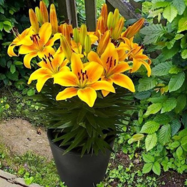 Лилия азиатская Golden Joy (Голден Джой) относится к низкорослым горшечным сортам, она прекрасно будет себя чувствовать и в комнате, и на балконе летом. Высота взрослого растения 35-40 см. Цветок насыщенно-желтый с оранжевым центром и мелким крапом у основания, крупный, до 16 см в диаметре. Цветение наступает в июне-июле. Сорт неприхотлив, легко поддается размножению,очень морозостоек. Предпочитает солнечные участки, защищенные от сильных ветров, нейтральные или слабокислые и хорошо удобренные почвы. Плохо растет на известковых почвах. Необходим умеренный полив. Место посадки не должно затопляться талыми или ливневыми водами.