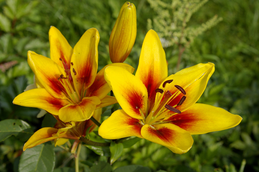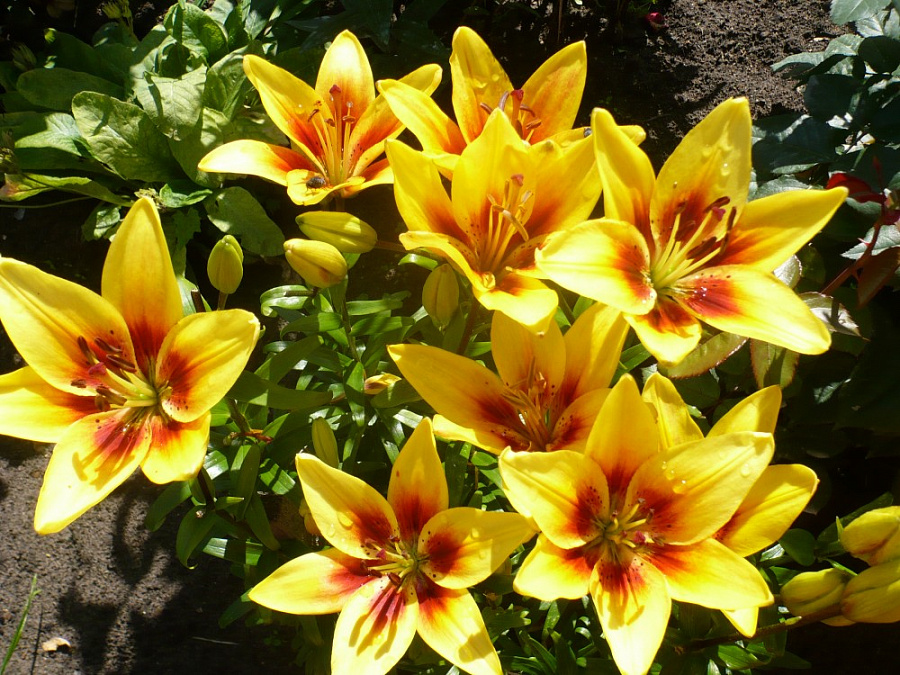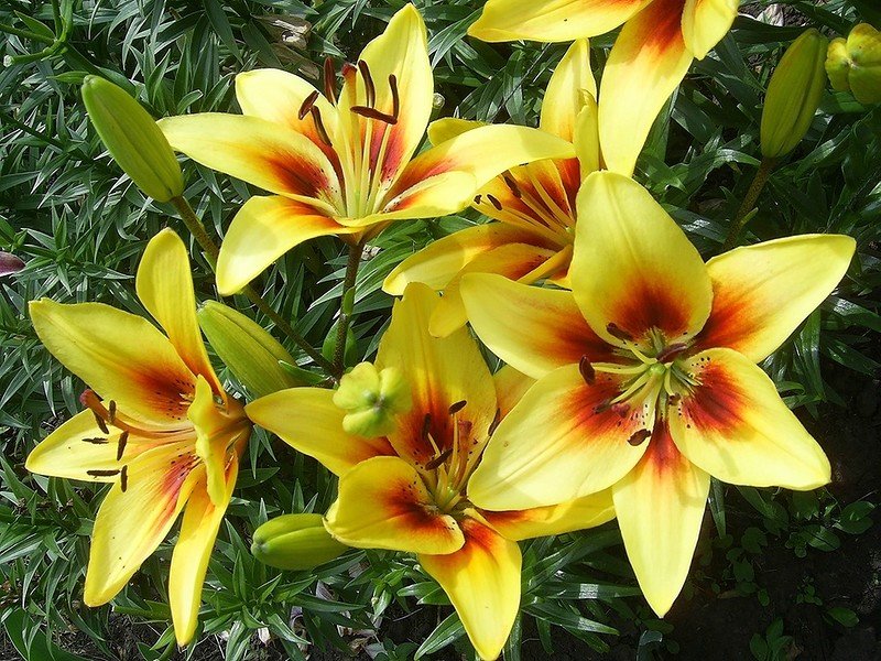 Окраска цветка : желтые, с красно-коричневым основанием и пыльниками