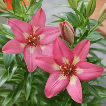 Луковицы лилии азиатской Розалин хорошо приживаются на новом месте. Сорт относится к новым азиатским гибридам с яркими цветками с диаметром до 10 сантиметров. Лилия выгоняет крепкий цветонос высотой около 60 сантиметров, на котором распускаются цветки с розовыми лепестками и контрастными кремово-белыми пятнами в центре. Цветет Розалин невероятно обильно и продолжительно, поэтому заслуживает места, откуда цветок будет хорошо видно. Пожалуй, об этом сорте, в отличие от других, нельзя сказать, что его стоит сочетать в смешанной клумбе с другими цветами. Единственной достойной «компанией» ей могут стать только такие же прекрасные лилии.