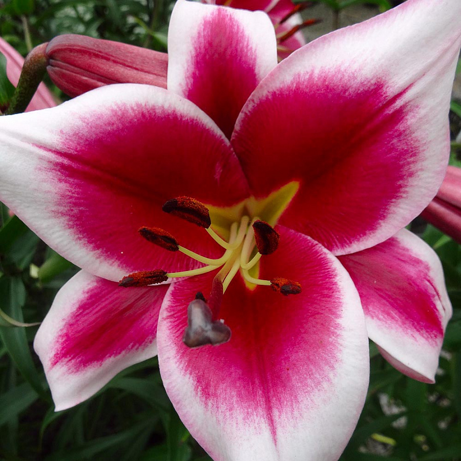 Окраска цветка : вишневый с широким белым краем